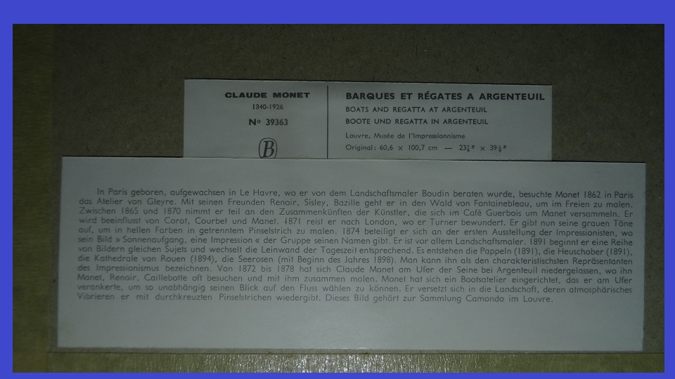 | Beschreibung: | barques et Régates à Argenteuil 1874 Hoch 60cm und Breit 91cm Kann abgeholt werden oder Lieferung 29.- die Versandkosten beinhalten Verpackungsservice Verpackungsmaterial und Versandkosten Versand auf das ausschliessliche Risiko des Käufers Gerne nehme ich Ihre Fragen per Telefon 078 721 25 07 oder E-Mail in Deutsch Englisch Französisch Italienisch oder Spanisch entgegen Privatverkauf unter Ausschluss jeglicher Gewährleistung! Besichtigung oder Abholung in 6234 Triengen SOLANGE DIE ANZEIGE ONLINE IST. IST DER ARTIKEL AUCH NOCH ZU HABEN |